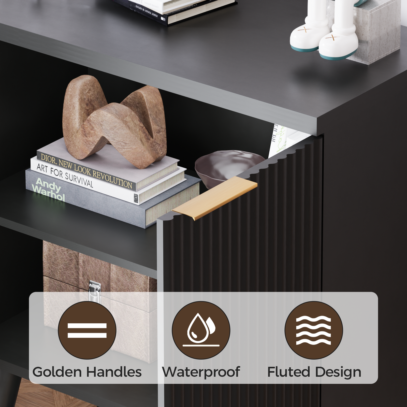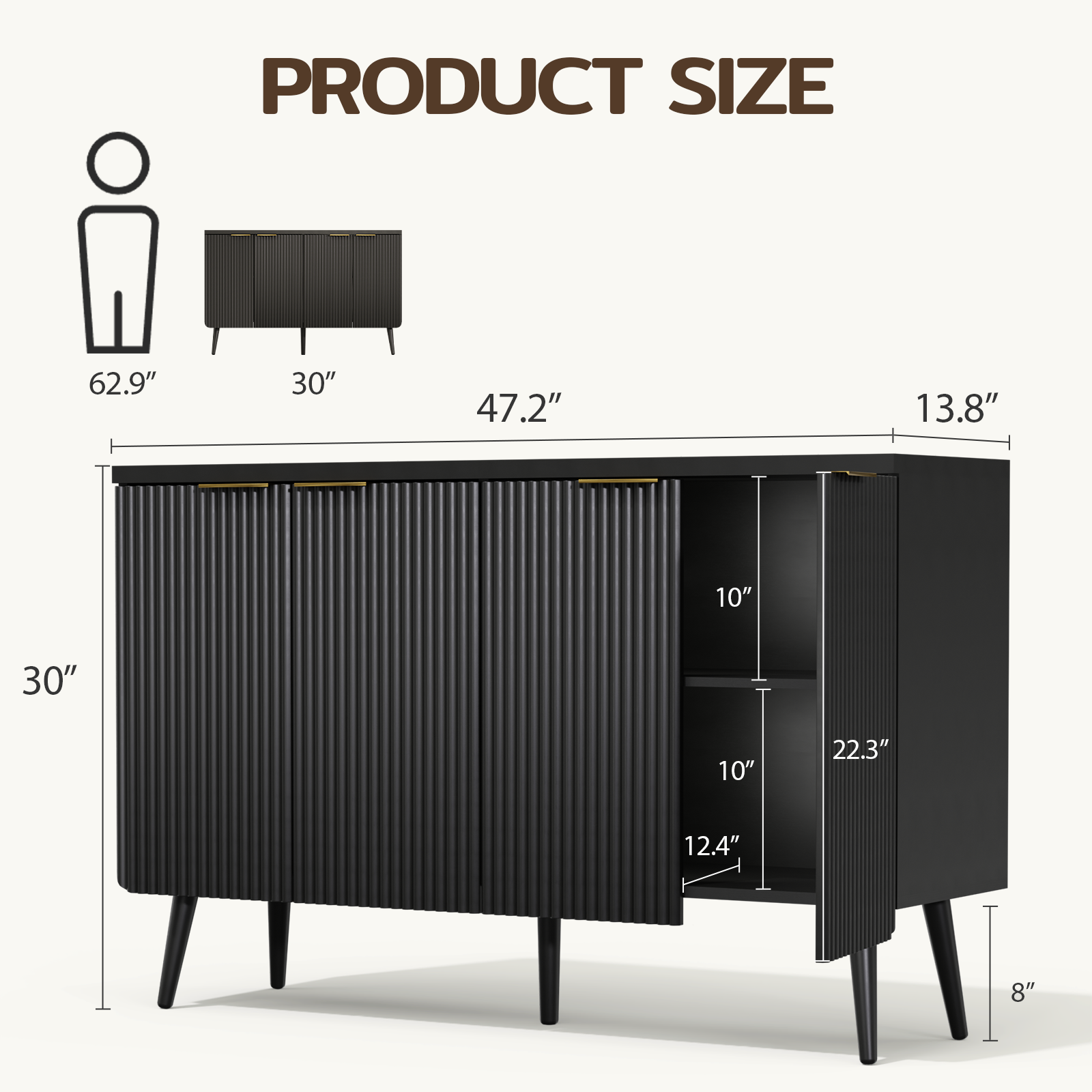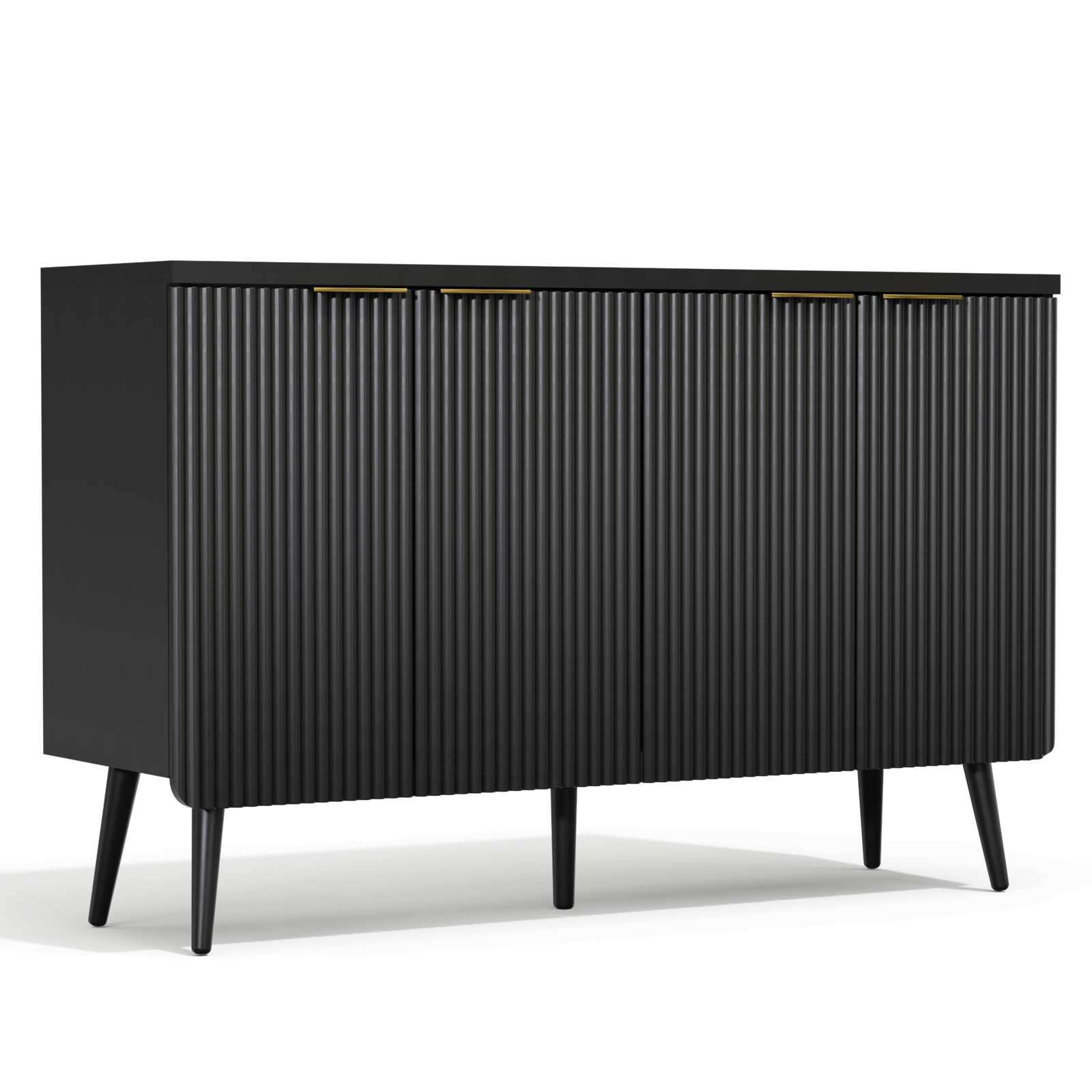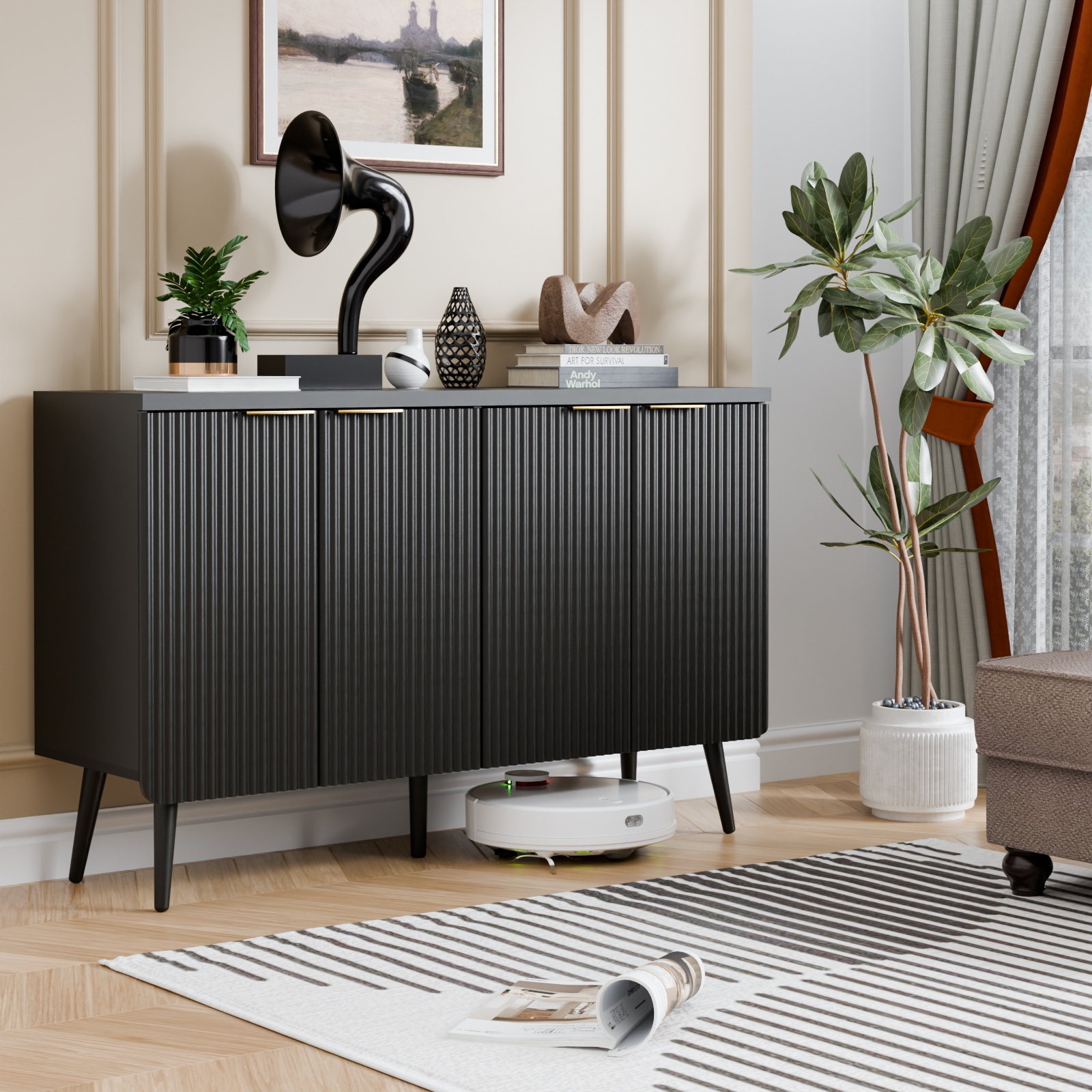The cabinet features a stylish design with rounded corners and a striped pattern, presenting a modern and elegant look that is a great addition to any room. It has ample storage with four doors, providing generous space to organize items and keep the area tidy. Constructed from high – quality MDF materials, it is durable and can withstand daily use while maintaining its beauty. It is versatile and suitable for living rooms, bedrooms, or offices to adapt to different decor needs.