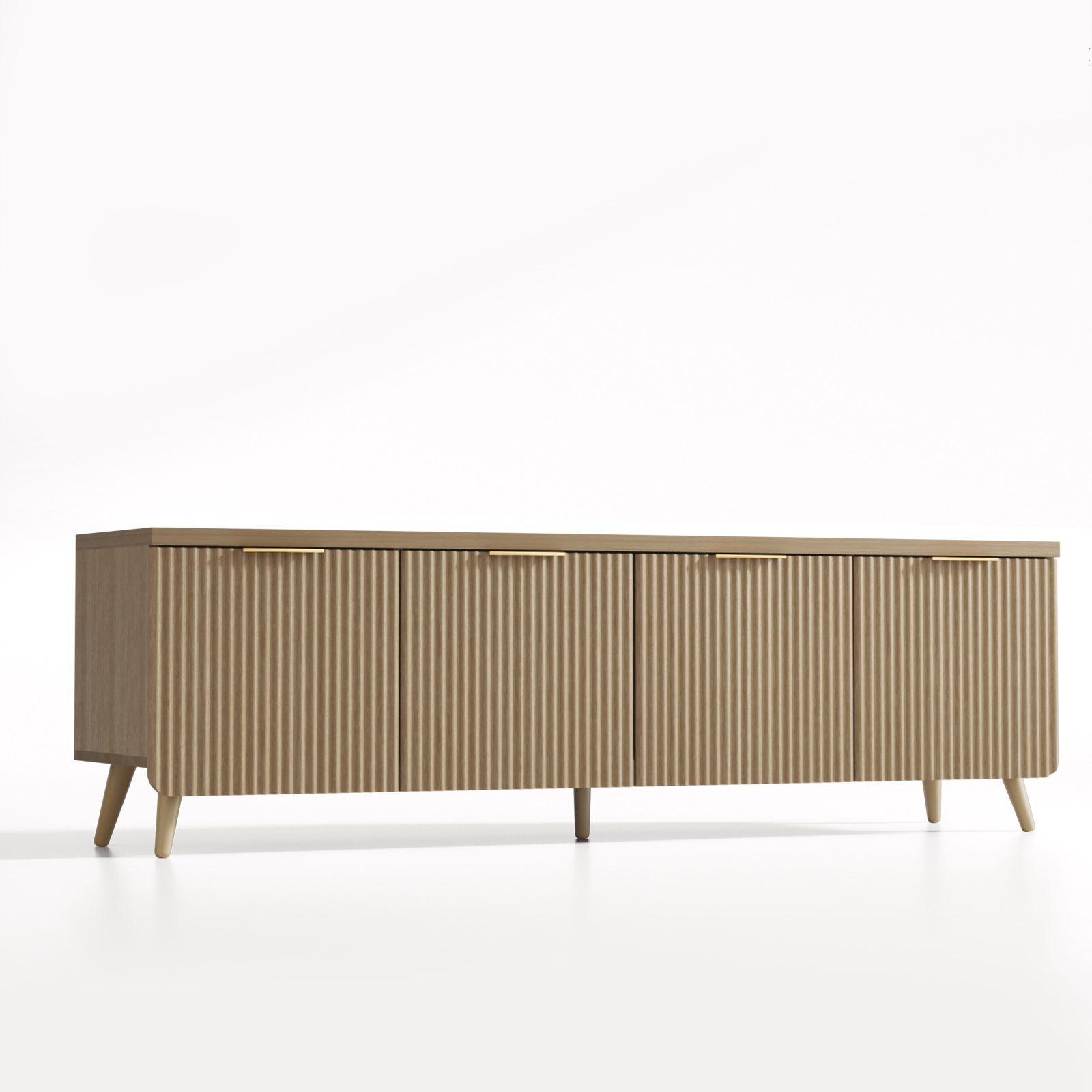 - 【Perfectly Proportioned Space】Generous dimensions (59″W x 14″D x 20″H) comfortably fit your TV and favorite décor, creating a clean, curated look.This TV stand provides ample space for your television and decorative items. Its four-door design offers concealed storage, keeping your media devices and essentials neatly organized
